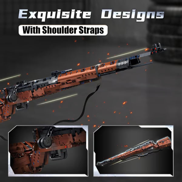 MOC Gun Model Building Blocks Kit: With 1206 pieces, based on the classic real firearm simulates appearance. The gun building kit with shooting function and with shoulder straps. Take it on camping trips or use it in the office or at home, which can gain fun and unique experience