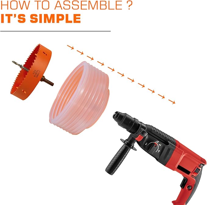 Our hole saw dust bowl is thoughtfully designed to capture most of the debris, especially when cutting holes in ceilings. It protects your eyes and keeps your clothes clean by preventing dust from spreading.