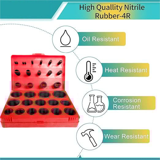 Ensure a perfect seal and prevent leaks in any application with our O-Ring Seal set. Made from high-quality commercial grade nitrile rubber (NBR), these O-rings are versatile, durable, and essential for both professional technicians and DIY enthusiasts.