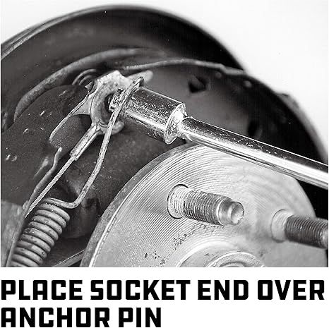 The socket end is specifically engineered to remove springs from the anchor stud, while the notched end ensures easy installation of the spring onto the anchor. This dual functionality makes the tool versatile and indispensable for brake work.