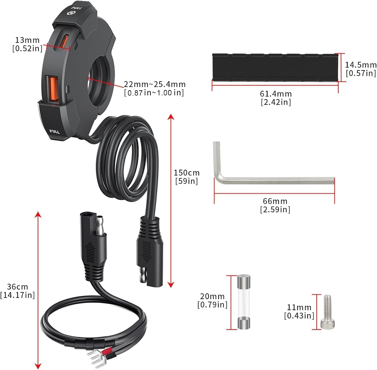 - Handlebar Fit: 0.7–0.9″ (18–23 mm) diameter