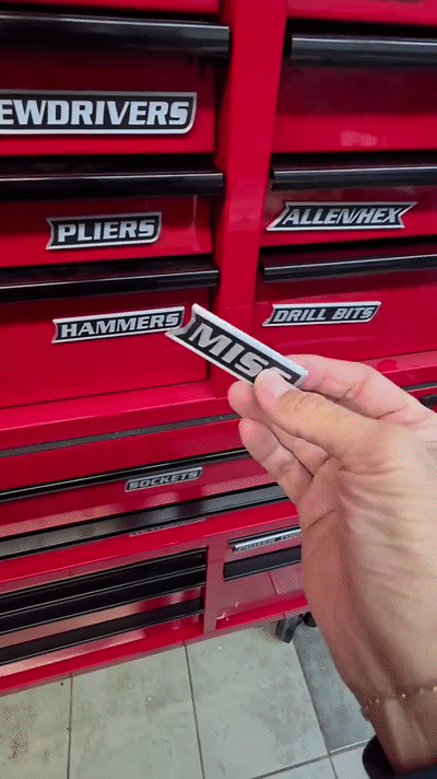 Bring order and personality to your workspace with ColKy Designs Custom Magnetic Tool Labels.Designed for toolboxes, carts, drawers, and cabinets, these magnetic labels make it easy to identify your tools at a glance — no more wasted time searching!
