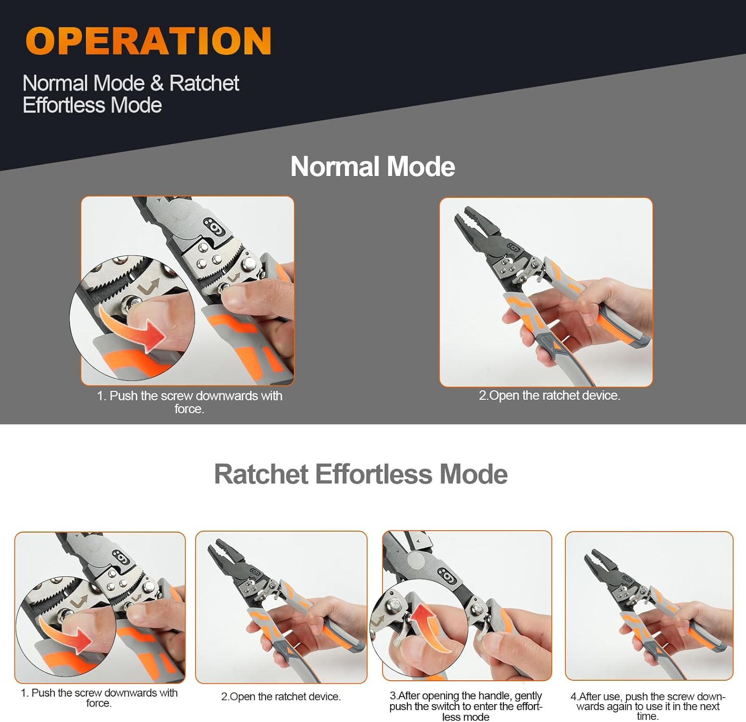 Switch to standard mode for clean cuts on thin wires. Ratchet mode multiplies your force for nails, cables, and steel bars, then clamps securely until you release.