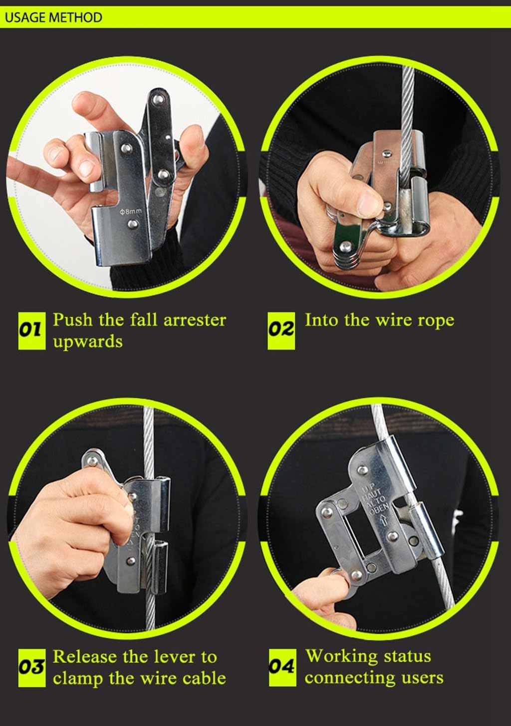 Effortless Fall Protection: Designed for 5/16″ (8 mm) wire ropes, it locks instantly under load, holding your position securely whether ascending or rappelling.
