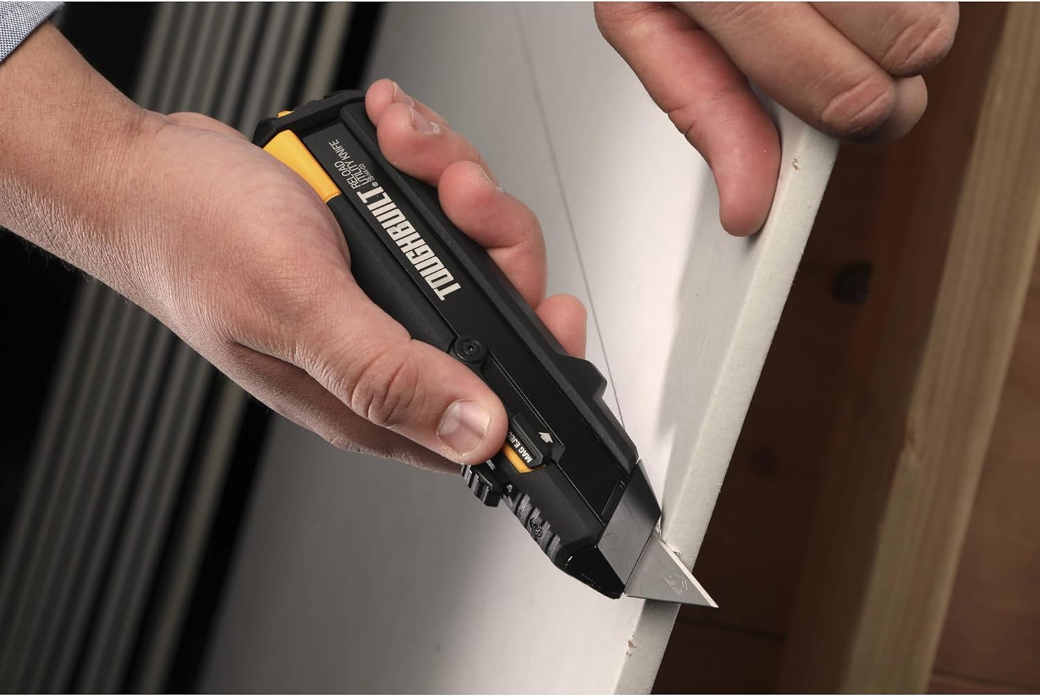 Patented mag‑release ejects spent blades instantly. Load fresh blades in one swift motion—switch between straight‑edge and hook blades in seconds.