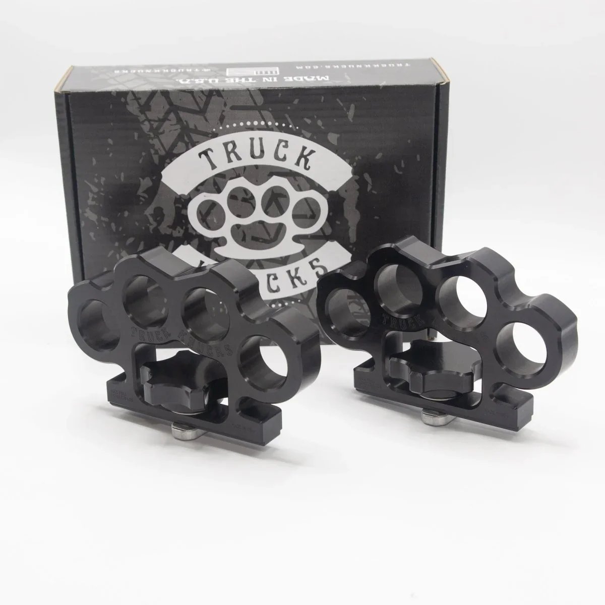 Our top-selling Black Truck Knucks deliver unmatched strength and style for your Tacoma, Tundra, Ram 1500** or Gladiator**. CNC-machined from billet aluminum and anodized in a sleek black finish, these rugged tie-down cleats are built to take a beating and look good doing it.